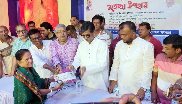 শনিবার (২৮ সেপ্টেম্বর ) কুমিল্লা নগরীর মনোহরপুর রাজ রাজেশ্বরী কালীবাড়ি মন্দিরে শারদীয় দুর্গাপূজা উপলক্ষে বিএনপির ভারপ্রাপ্ত চেয়ারম্যান তারেক রহমানের পক্ষ থেকে শুভেচ্ছা উপহার প্রদান অনুষ্ঠানে প্রধান অতিতির বক্তব্যে তিনি এসব কথা বলেন। কুমিল্লা-৬ নির্বাচনী এলাকার ১৩১টি পূজা ম-পে নগদ অর্থসহ শুভেচ্ছা উপহার প্রদান করা হয়।